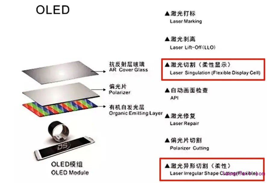 可折疊手機的屏幕采用的是柔性OLED屏,所謂的柔性屏就是指:可以自由彎曲、折疊的屏幕。柔性屏作為嶄新的領域,在加工過程中面臨著許多問題,對加工工藝提出了更高的要求。與傳統(tǒng)的脆性材料加工相比,OLED顯示屏由于其復雜的分層機構(gòu),在制造過程中必須以最高的精密度進行加工,以保證質(zhì)量和良品率。